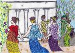 América Rodríguez - Sus imágenes parecen surgir de la memoria, es un trabajo de introspección. Así el grabado de América Rodríguez cuestiona : “Emigrar Desplazar Adoptar”. No son retratos pero miradas extrañas o invocaciones a algún espíritu o ser sobrenatural, quizá antepasados, para que se manifieste. Inspiran respeto, imponen silencio. El gusto de la artista por la naturaleza guía su búsqueda gráfica, ella juega con la madera, graba motivos decorativos en el linóleo sugiriendo telas tradicionales y sombras.
